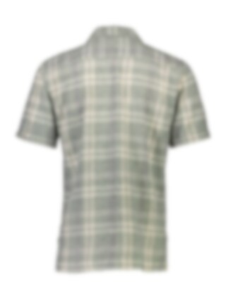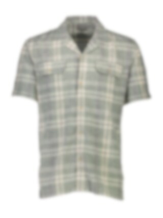 Kortärmad skjorta i sval linne- och bomullsmix med klassiskt rutmönster, dubbla bröstfickor och öppen krage – perfekt för varma dagar. FADED GREEN