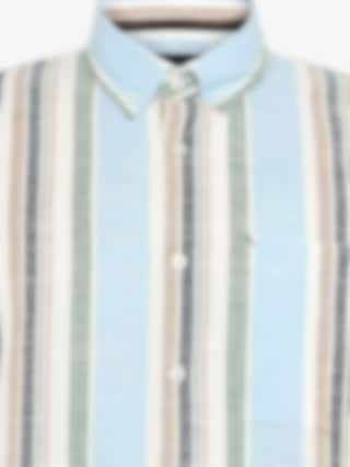 Randig kortärmad skjorta i 100% bomull med button-down-krage och bröstficka. Perfekt för en stilren, somrig look. BLUE CAPTAIN