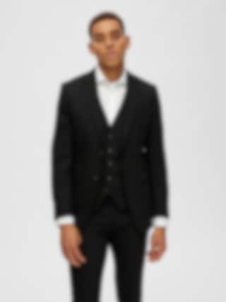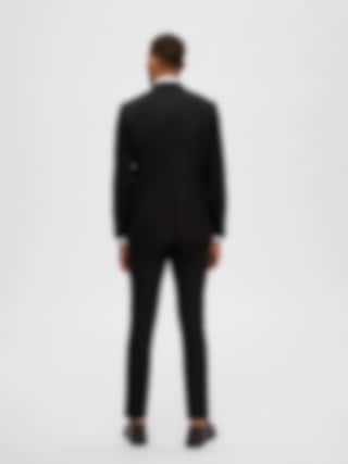 Stilren herrkavaj i slim fit med klassiskt notch-slag, knappstängning och dubbla sprund bak. En mångsidig kavaj för både vardag och fest. BLACK