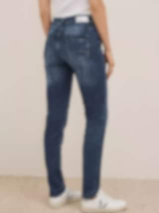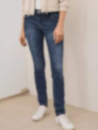 Cecil Scarlett jeans med Mid Waist, Slim Legs och klassisk blå tvätt. Bekväm Casual Fit i stretchig bomullsblandning med 5-ficksdesign – perfekta för vardag och arbete.