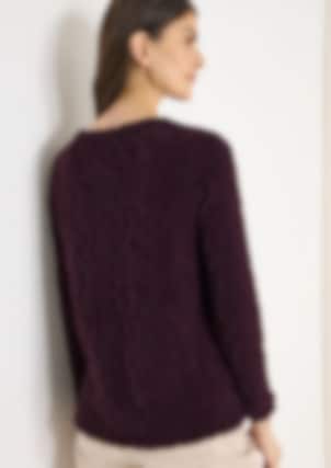 Mjuk och mysig tröja från CECIL med grafiskt jacquardmönster. Plagget har U-båtringning, långa ärmar och en justerbar dragsko i fållen – perfekt för avslappnade vardagsstunder.