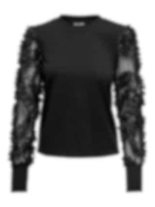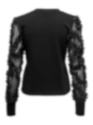 Svart sweatshirt från JDY med rund halsringning, långa ärmar och vackra spetsdetaljer. Bekväm och stilren tröja – perfekt till vardags och finare tillfällen. BLACK