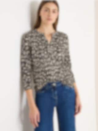Stilren blus från CECIL med grafiskt mönster och mjuk materialmix i bomull och modal med stretch. Split neck och en fin frontdetalj ger en modern och bekväm vardagslook. RAW KHAKI