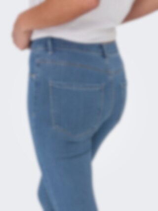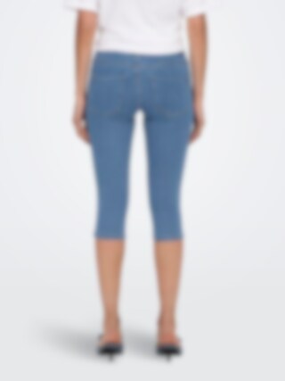 Knälånga denimshorts i skinny fit med mellanhög midja, bälteshällor och bakfickor – tillverkade i en mjuk och stretchig viskosblandning. LIGHT BLUE DENIM