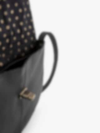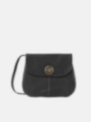 Liten skinnväska från Pieces. Väskan har stängning fram och lång axelrem.
