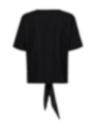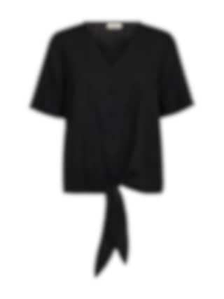 Luftig knytblus i linne- och viskosmix med v-ringning, kort ärm och klädda knappar – en stilren favorit för varma dagar. BLACK