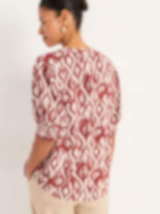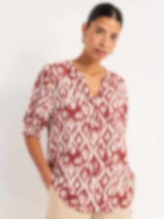 Mönstrad blus med ledig passform, v-ringning och 3/4-ärm med resår – ett luftigt och stilrent val för både vardag och fritid. RUST
