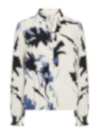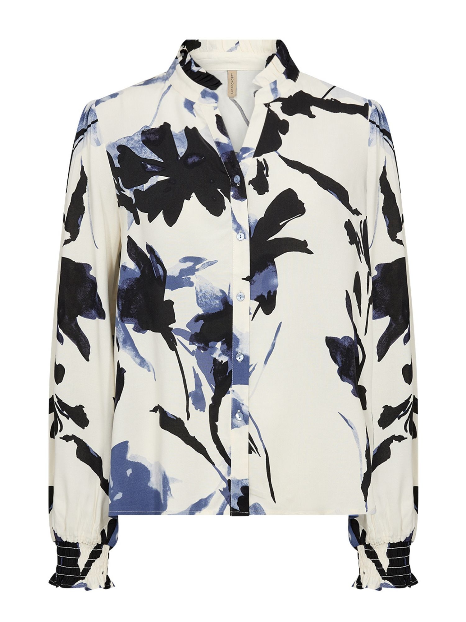 SC-BENE 1 är en blommig skjorta i mjuk viskos med volangkrage och knappslå framtill. En elegant topp som passar perfekt till både byxor och kjol.