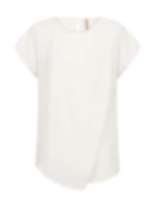Stilren blus i 100 % återvunnen polyester med rund halsringning och korta ärmar. Den har ett elegant fall och kan enkelt stylas både för kontoret och en avslappnad vardagslook. OFFWHITE