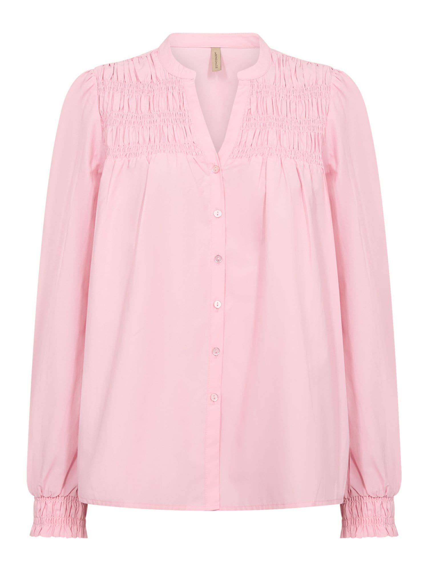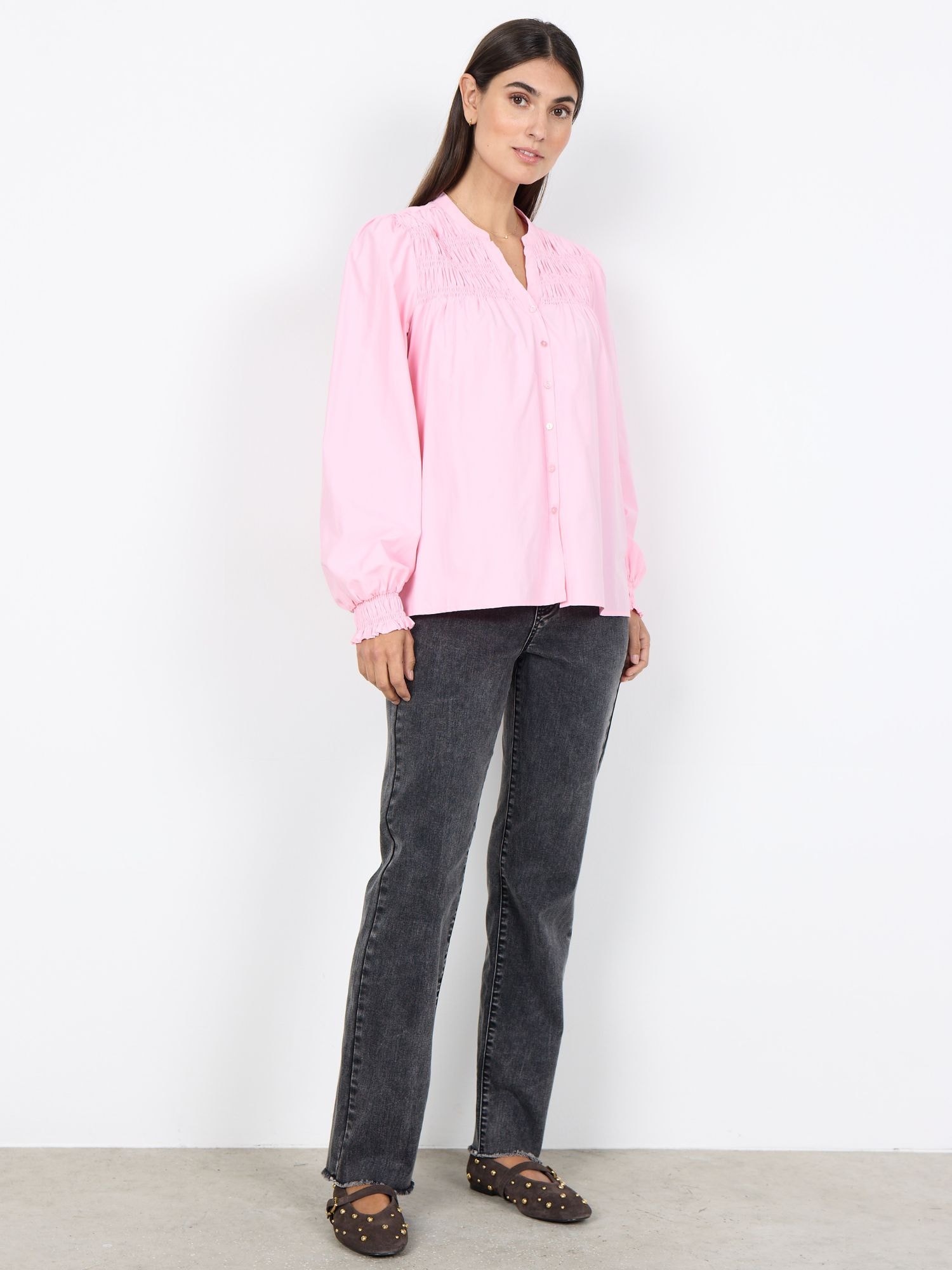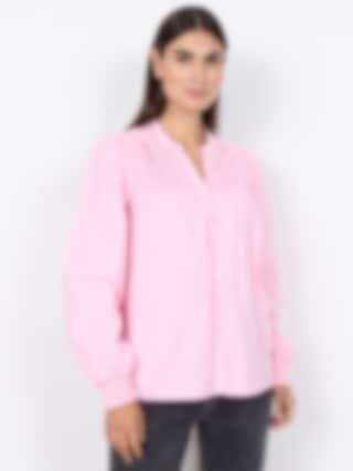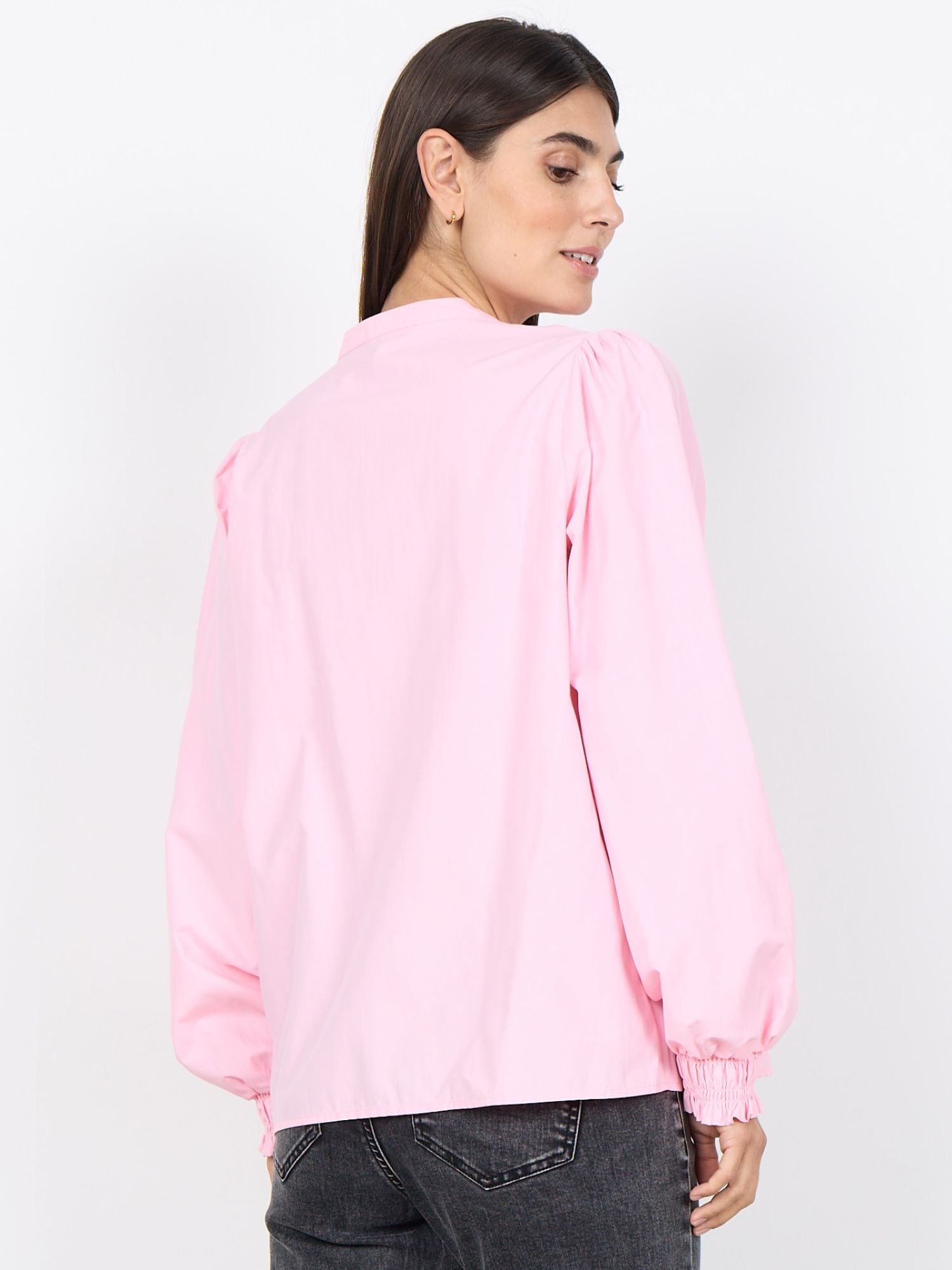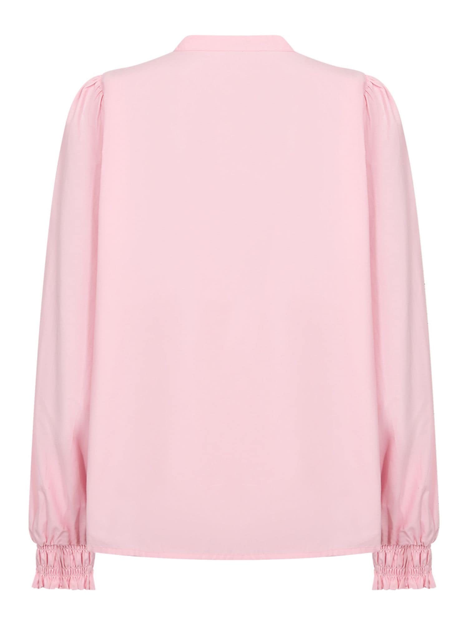 SC-NETTI 116 är en stilren blus med V-ringad krage, knappslå och eleganta rynkdetaljer. Perfekt att styla med både byxor och kjol för en tidlös och feminin look.