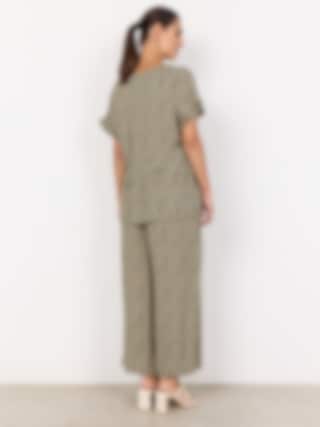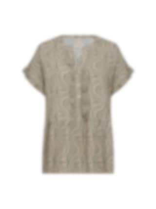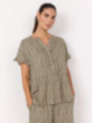 Blus i 100 % LENZING™ ECOVERO™ viskos med v-ringning, knytband och botaniskt mönster – perfekt för en smart-casual look. THYME