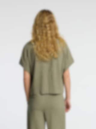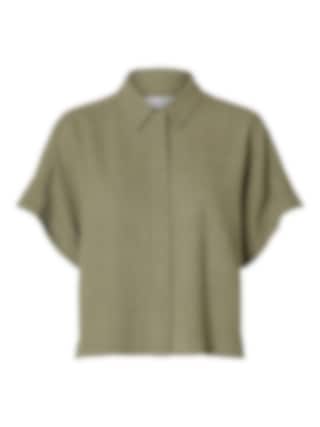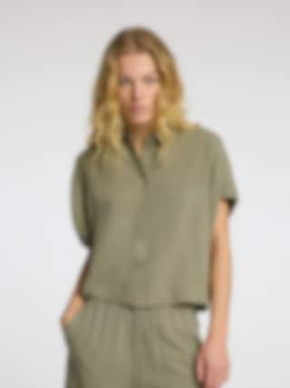 Kortärmad skjorta i viskos- och linnemix med skjortkrage, knappstängning och uppvikta ärmslut – en avslappnad och trendig vardagsfavorit i croppad modell. VETIVER