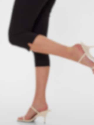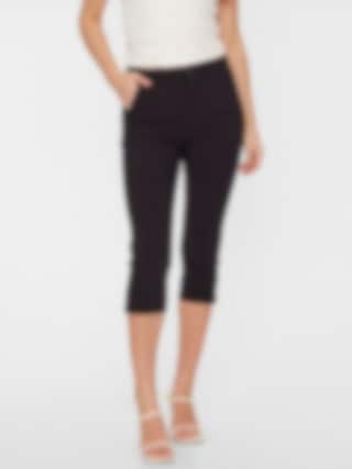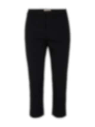 Capribyxor i mjukt material från Freequent med smal passform, hög midja, sidofickor och stilrena slitsar i bensluten. Ett elegant och bekvämt val för både vardag och fest.