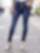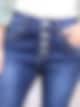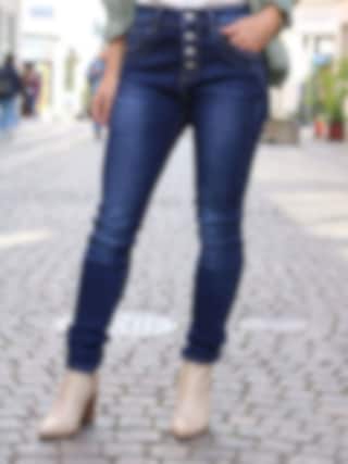 Trendiga stretchjeans med fyra dekorativa knappar framtill – en bekväm och stilfull byxa för vardag och fest.