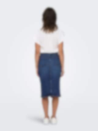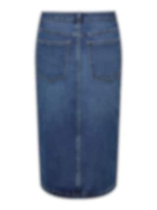 JDYMOON HW midi slit skirt är en klassisk denimkjol i mörkblå tvätt med hög midja och slits. Tillverkad i stretchig bomullsblandning för en bekväm passform. Perfekt att styla med en enkel t-shirt eller stickad tröja för en tidlös look.