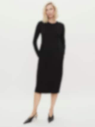 Klänning från Masai i mjuk och stretchig trokåkvalitet. Rund halsringning, långa ärmar och smickrande drapering i midjan ger en bekväm och elegant passform.