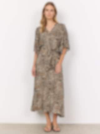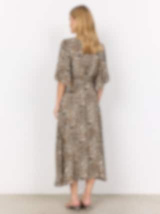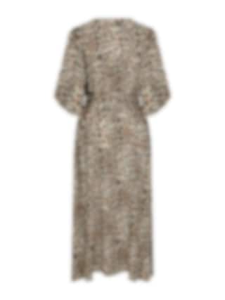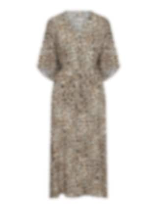 SC-PIETTA 4 är en lång klänning tillverkad av 100% ECOVERO viskos. Denna fantastiska klänning har en V-ringning, knappar, medellånga lösa ärmar, en justerbar midja med knytband och ett leopardmönster. Kombinera den med olika accessoarer för en komplett look.