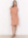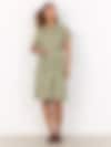 Bekväm klänning i ekologisk bomull och viskos med geometriskt mönster, knytskärp och rund halsringning – en mångsidig vardagsfavorit.