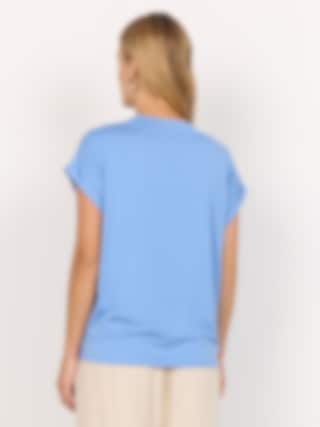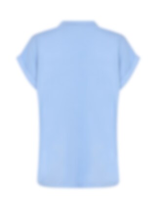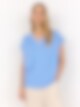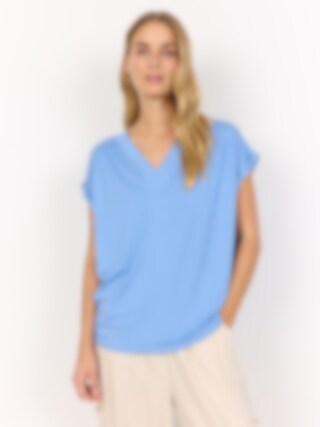 Klassisk t-shirt i en mjuk lyocell- och elastanblandning. Den har en feminin V-ringning, korta uppvikta ärmar och en lös passform. Perfekt att styla med jeans och en lätt kofta för en avslappnad, snygg look. AIR BLUE
