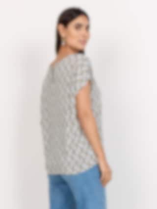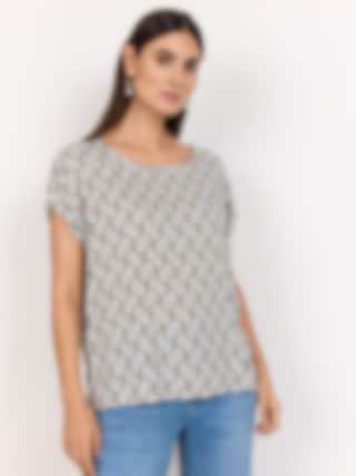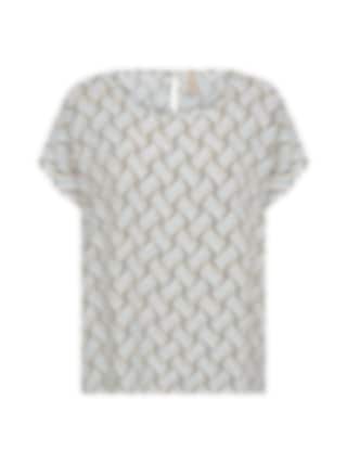 Blus i 100 % ECOVERO™ viskos med ett unikt abstrakt mönster, korta ärmar och rund halsringning med knappstängning i ryggen. Perfekt att matcha med byxor eller kjol för en elegant look. AIR BLUE COMBI