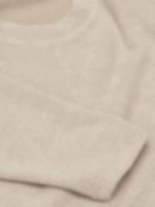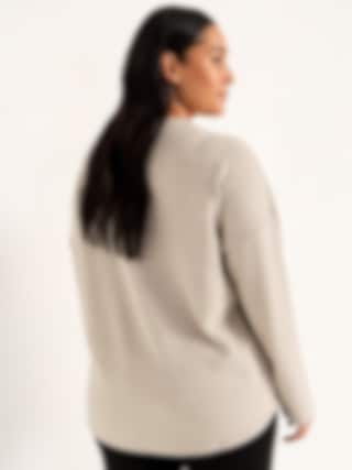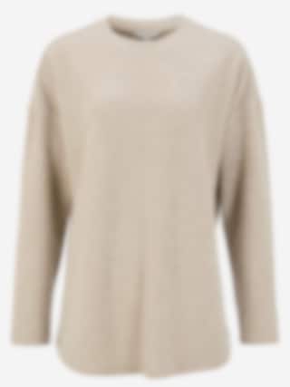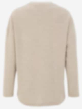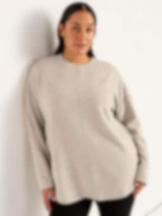 Mjuk, stickad tröja i stretchigt ribbat material med borstad yta. Rundhalsad med rak passform, långa ärmar och dekorativ mittsöm.