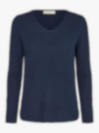 Stickad tröja med V-ringning i mjukt material – en perfekt bas för en avslappnad vardagslook. NAVY