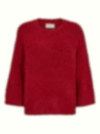 Klassisk stickad tröja från Freequent med rund hals och långa ärmar. En mjuk och lätt modell i subtil struktur som kombinerar skandinavisk enkelhet med modern elegans.