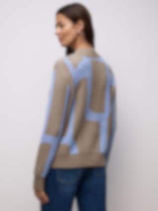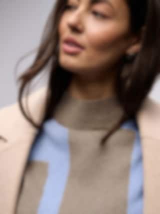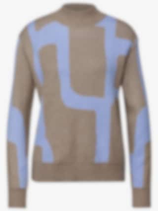 Stickad damtröja från Street One med grafiskt jacquardmönster och hög polokrage. Mjukt, mysigt material och ribbade muddar ger en sportig och bekväm vinterlook.