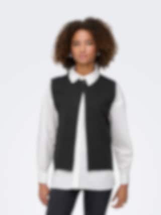 Stickad väst med rund hals, knappstängning och regular fit. En mjuk och mångsidig favorit som passar perfekt över skjortor eller klänningar.