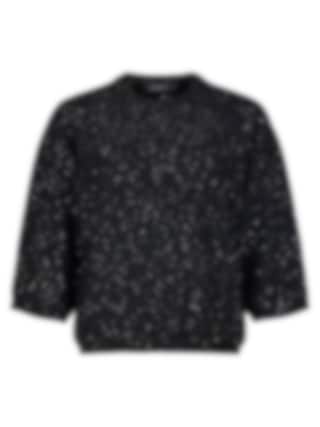 Glittrande stickad tröja i mjuk viskosblandning med trekvartsärmar och eleganta paljettdetaljer – perfekt för både vardag och fest.
