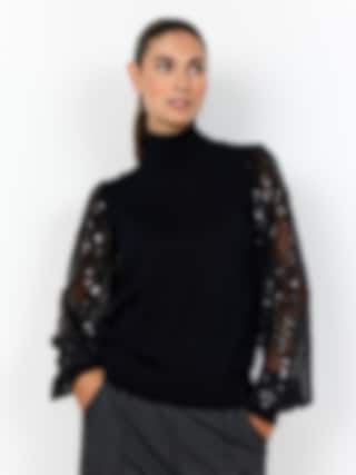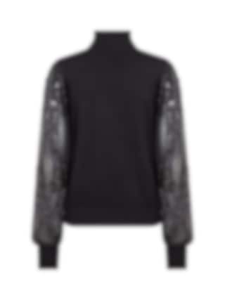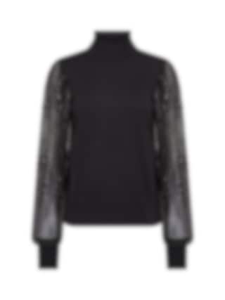 Elegant pullover med hög hals och dekorativa meshärmar med paljetter. En sofistikerad topp som passar lika bra till fest som till vardag.