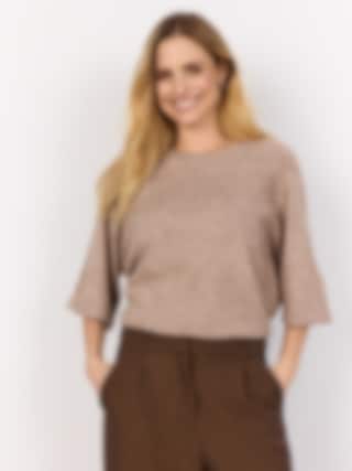 Mjuk och stilren stickad topp med halvlånga ärmar och rund hals – perfekt för lager på lager och avslappnade vardagslooks.