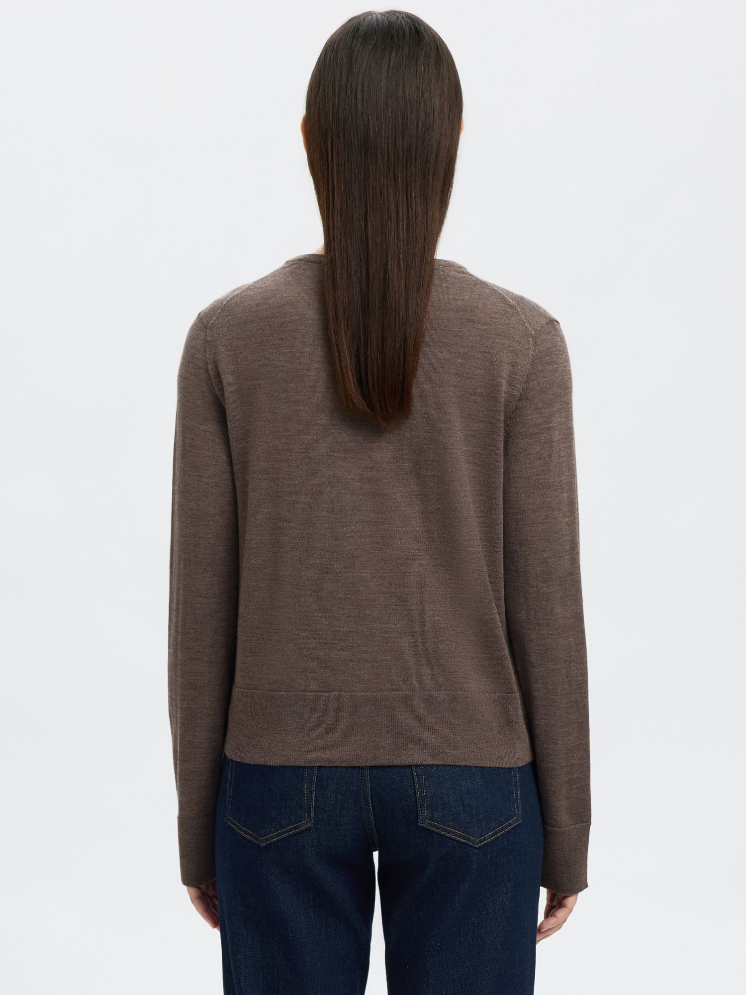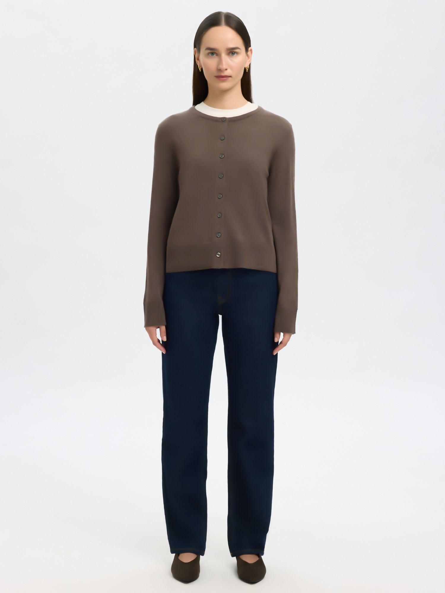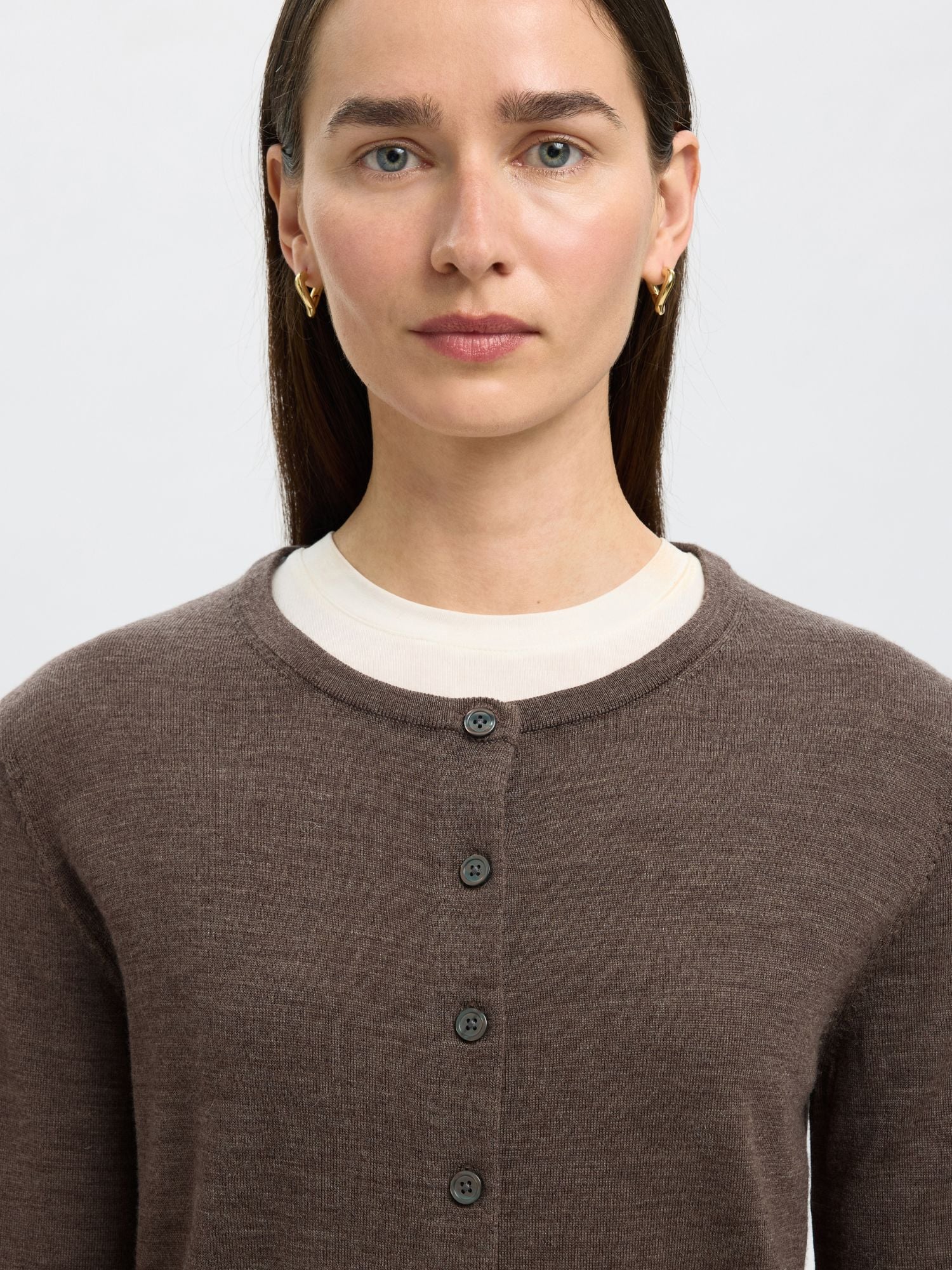 Stilren cardigan från Selected Femme med rund hals, knäppning framtill och långa ärmar. En klassisk modell med regular fit och ribbade muddar – perfekt för vardagens alla tillfällen.