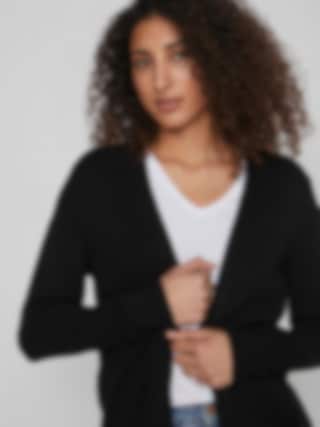 En stickad cardigan i viskos med en mjuk och lätt känsla. Designad med split-neck och långa, reguljära ärmar för en klassisk och bekväm passform från VILA. BLACK