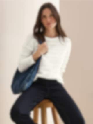 Strukturstickad tröja, med rund halsringning och lång ärm. VANILLA WHITE