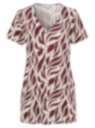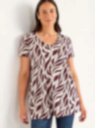 Mjuk och luftig tunika i bomulls- och viskosblandning med A-linjeform, V-ringning och korta holkärmar. Praktiska sidfickor och rundad nederkant. Längd ca 76–86 cm beroende på storlek.