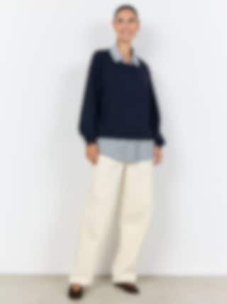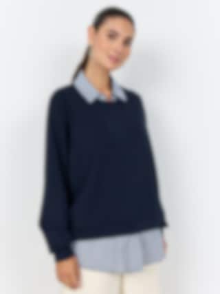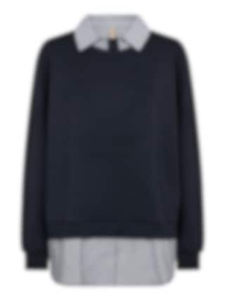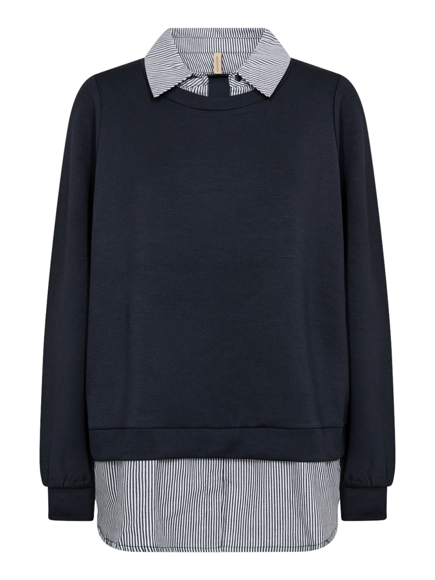 SC-BANU 264 är en blus i mjuk mix av modal, polyester och elastan, med randig krage och lager-på-lager-design. Perfekt både till byxor och jeans.
