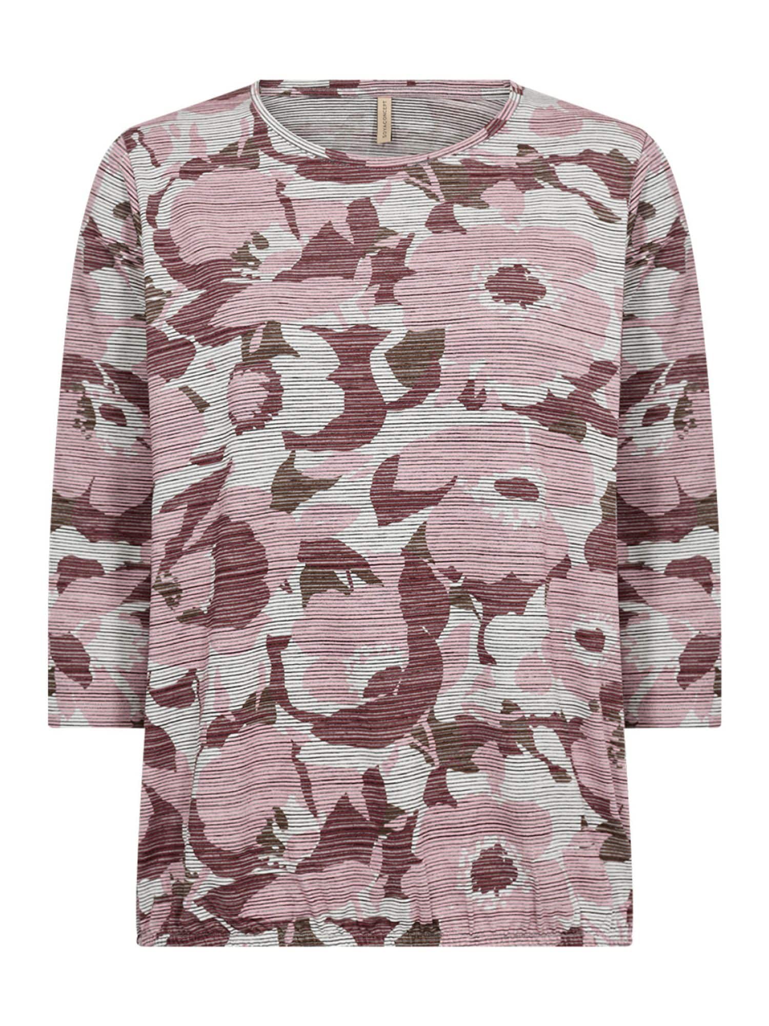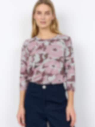 Stilren top med rund hals, trekvartsärmar och stort blommönster. Tillverkad i ett mjukt och stretchigt material för en bekväm passform.