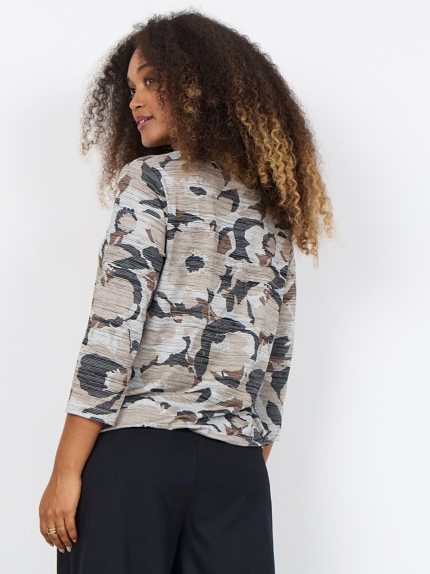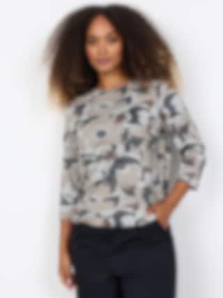 Stilren top med rund hals, trekvartsärmar och stort blommönster. Tillverkad i ett mjukt och stretchigt material för en bekväm passform.