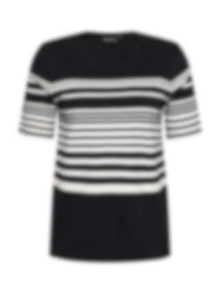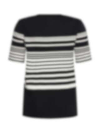 En stilren randig t-shirt i blått och vitt. Klassisk design med rund hals och korta ärmar – ett tidlöst basplagg för alla garderober. MIDNIGHT BLUE