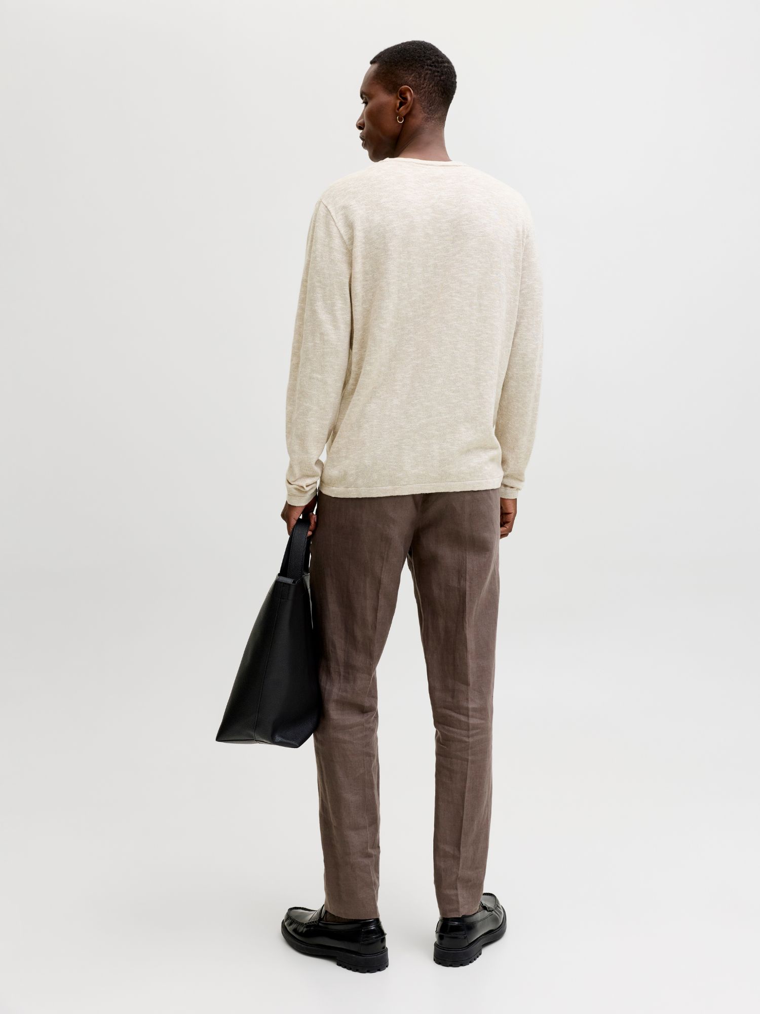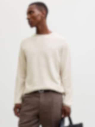 En mångsidig stickad tröja från Jack&Jones i flat knit med rund hals och nedhasade axlar. Lika snygg till jeans på helgen som över skjorta på kontoret. STRING W. WHITE