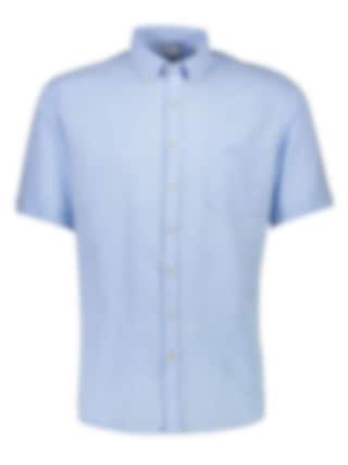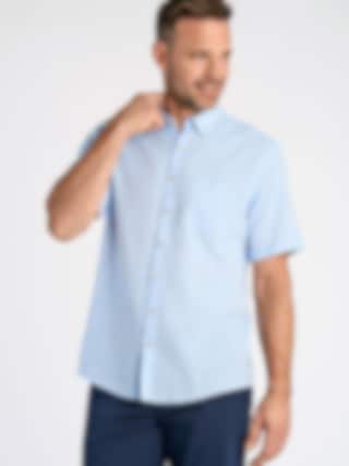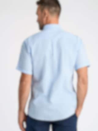 Kortärmad skjorta i mjuk bomulls- och linnemix med knäppning framtill, button down-krage och diskret randigt mönster – perfekt för sommaren. SKY BLUE