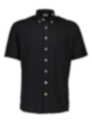 Kortärmad skjorta i mjuk bomulls- och linnemix med knäppning framtill, button down-krage och diskret randigt mönster – perfekt för sommaren. BLACK