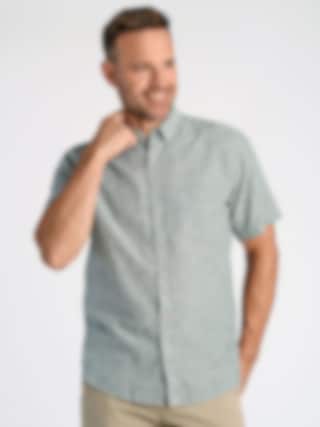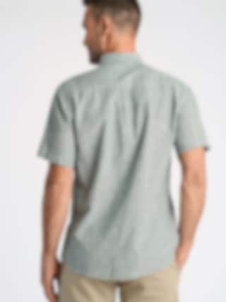 Kortärmad skjorta i mjuk bomulls- och linnemix med knäppning framtill, button down-krage och diskret randigt mönster – perfekt för sommaren. FADED GREEN STRIPE