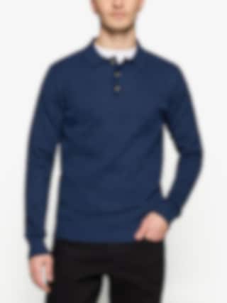 Klassisk stickad tröja i mjuk bomull med krage och knappar i halsen – tidlös, bekväm och enkel att styla.