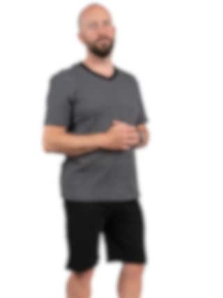 Randig pyjamas i 100% bomull med korta ärmar och ben. Mjuk, sval och perfekt för varma nätter, med ledig passform och enfärgade byxor.