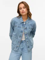 Denna denimshacket från Vero Moda i vävd, hållbar kvalitet med knäppning, framfickor och avslappnad passform – ett tidlöst och mångsidigt plagg.