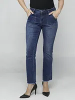 Dessa jeans kombinerar stil och komfort på bästa sätt. Modellen har en rak passform och ett något croppat ben med råkantad fåll, vilket ger en modern och avslappnad look. De dekorativa framfickorna och de subtila tvätteffekterna skapar en unik och trendig detalj. Jeansen är designade i ett stretchigt material som formar sig fint efter kroppen och ger en bekväm passform. Perfekta att bära både till en avslappnad vardagsstil med sneakers eller en mer uppklädd look med klackar.