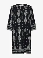 Denna klänning från Freequent kombinerar komfort och stil på ett perfekt sätt. Tillverkad i mjukt, behagligt material, har klänningen en lös passform som ger rörelsefrihet och en avslappnad känsla. Trekvartsärmarna med elastiska avslutningar ger en subtil detalj samtidigt som de gör plagget lätt att bära under hela dagen.
