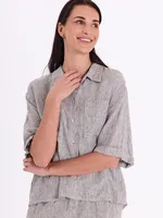 Luftig skjorta från Freequent i vävd linblandning med smala, garnfärgade ränder. Loose fit, trekvartsärmar och bröstficka – perfekt för en avslappnad men stilfull look.